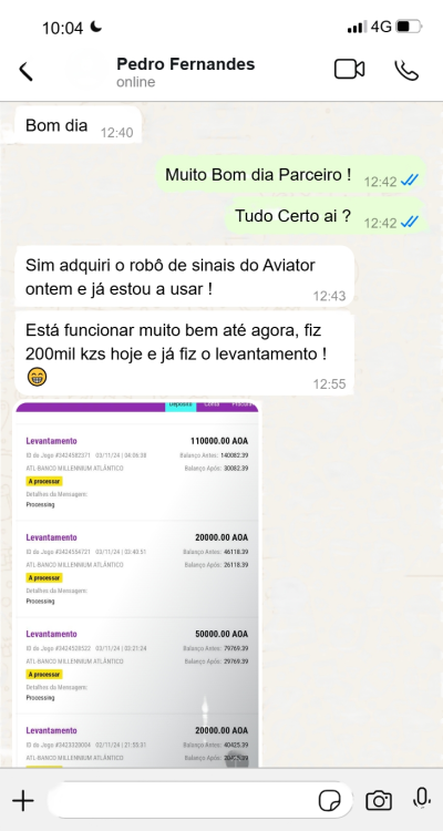 O robô de inteligência artificial analisa os padrões do Aviator em tempo real e prevê os melhores momentos para jogar e sair. Você recebe os sinais diretamente no seu celular, sem precisar fazer cálculos ou arriscar tentando a sorte. Praticamente, voce só segue as instruções do robô e lucra.